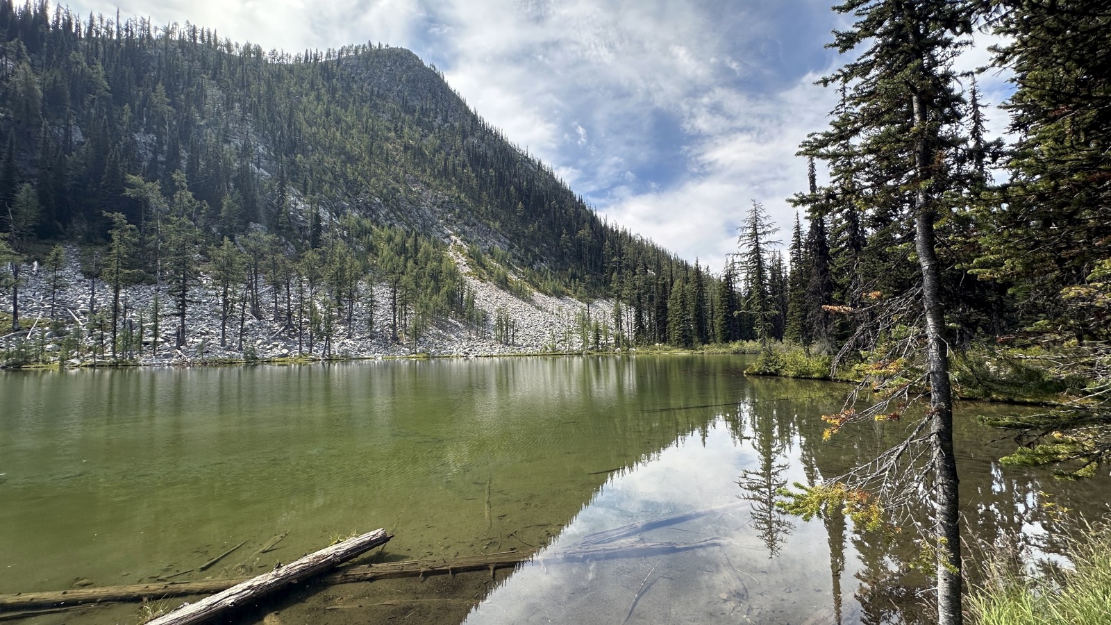 The next day we inched down the eastern slope. Rough rocks, tight switchbacks, not many pull-outs. Mary’s Lake looked promising until we realized it was a provincial park packed with Labor Day campers. We tried a spot outside the park, but Starlink was blocked by trees. Nope. Backtracked a mile, turned down another side road, and scored a quiet patch all to ourselves.