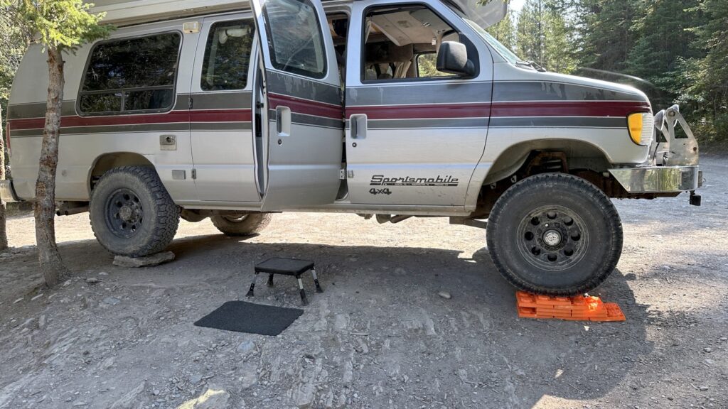 At first, we parked near a lonely picnic table by the water. Kerri spent a few minutes doing her usual dance with the leveling blocks and a few choice rocks until Marcel was reasonably straight, only for us to look at each other and say, “Nah, closer to the water.” So down to the riverbank we went — no picnic table, no problem. The rapids filled our windows, Starlink beamed happily into space, and it felt like the perfect last chapter of our Canadian story.