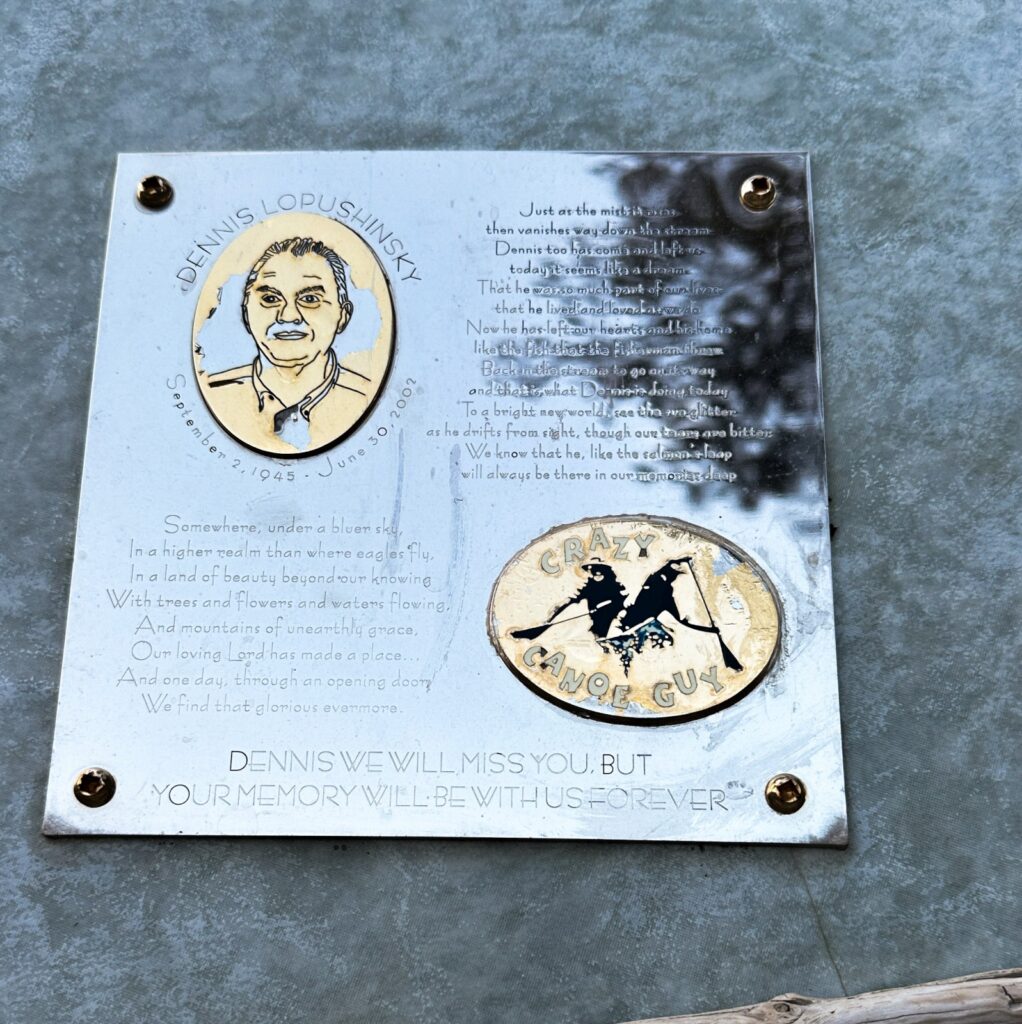 - At Horseshoe Rapids, a memorial for the “Crazy Canoe Guy” who did in fact pass away at tis spot due to a canoe accident. At least he went out doing what he loved.