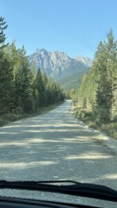 That cursed gate with the skulls forced us into a full retreat. We retraced our tire tracks all the way back to Yoho National Park, onto the main highway, down into Golden, and then south again — basically driving parallel to the dirt road we should’ve been on. A hundred miles later, we climbed back up the western slopes of the Canadian Rockies and finally reconnected with it. Detour complete. No harm done. Just an extra $50 is fuel and some choice words.