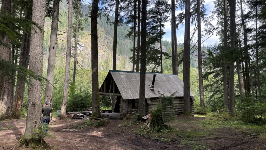 Next up was Wap Lake, which promised a couple more camps. The first site? Too small, too dusty. The second looked better, until we noticed it was already occupied. Full house. At that point, our standards had hit rock bottom. We backtracked a quarter mile, slipped down a faint trail I’d spotted earlier, and wedged ourselves into a tiny riverside nook. No epic view, no Instagram magic. Just quiet, hidden, and ours for the night. After the owls, the cabins, and all that scouting, “good enough” felt like winning the lottery.