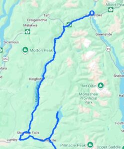 Next morning, we pulled a ninja-style exit before anyone could ask us how we liked “the facilities” and got back to the real plan: Mabel Lake. This beast of a lake comes with an 88-kilometer stretch of dirt and gravel running along its side. Eventually it would reconnect us to civilization — but until then, it was us, the road, and every random side path that dared to catch our attention.