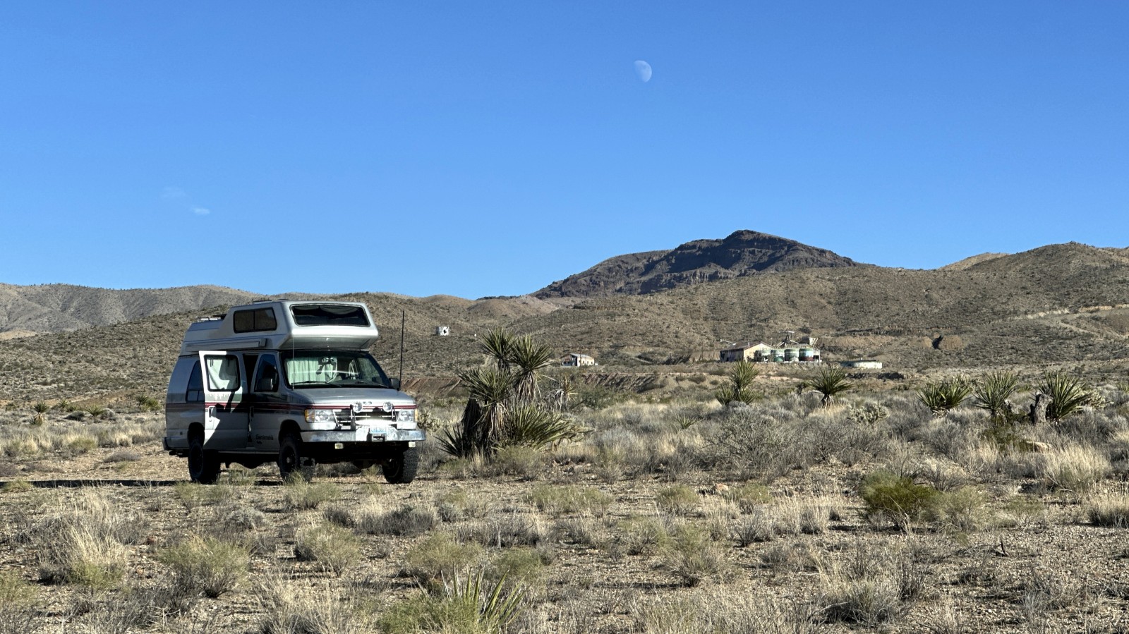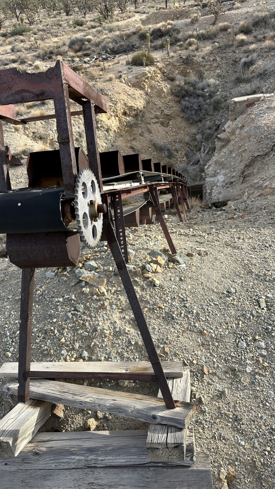 An hour later, after a mix of dirt and pavement, we arrived at Death Valley Mine. Long abandoned and slowly being reclaimed by the desert, it felt like as good a place as any to settle in for a couple nights and get some work done. We parked Marcel a few hundred yards from the mine, tucked among Joshua Trees with a wide-open view.