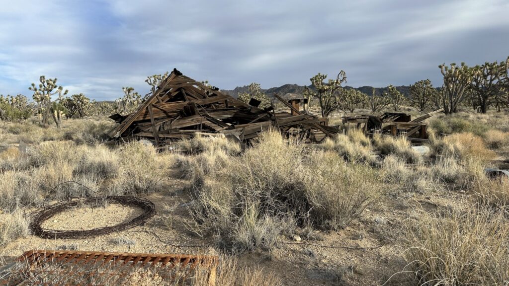 After striking out at Castle Mountain National Monument, we found ourselves wandering a web of dirt roads inside the Mojave National Preserve, passing the still-operational Hart Mine along the way. Not long into the wandering, we were stopped cold by a fallen Joshua Tree sprawled across the road.