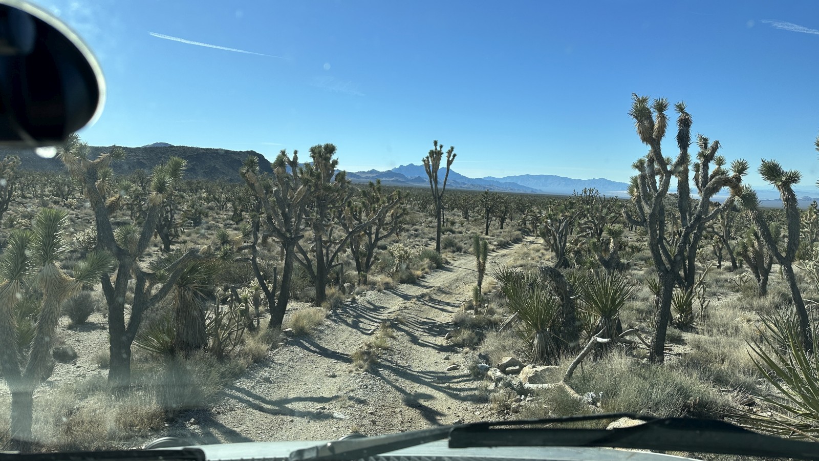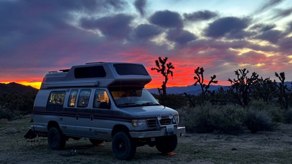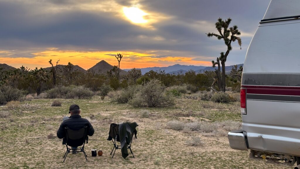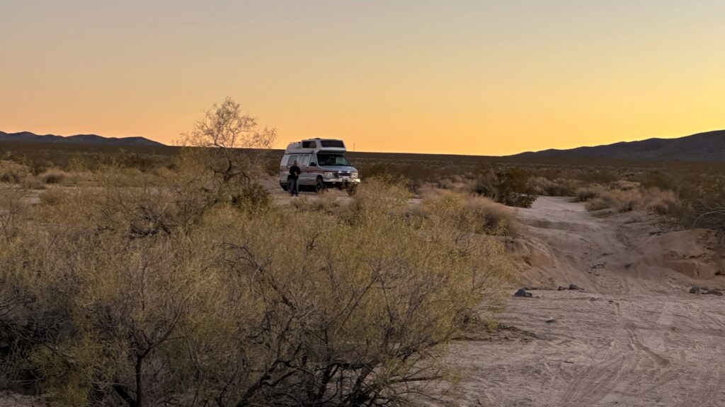 To shorten the next day’s drive back into Nevada, we moved closer to the Interstate and parked just off the pavement near a wash for our final Mojave night. Nothing special, but it did the job. We shaved an hour off the next day’s drive and had the place mostly to ourselves, save for one couple out for a short hike. Mojave mission accomplished.
