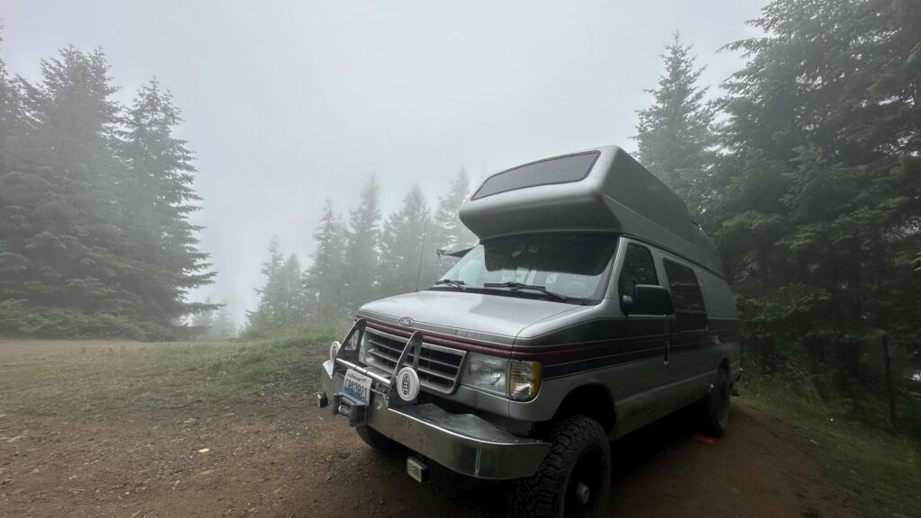 With Marcel parked and leveled we got straight to absolutely nothing. We recreational camped for the first time since we started the van-travel thing again. Foggy mornings, campfires in the evenings, short excursions to explore the immediate area, and a whole lot of laying around ensued – all with that advertised view of Seattle in the tiny break in the trees. This was just what we needed. Three nights we stayed here, our longest stay to date but for the 9 days we were broke down in Fort Bragg. Days without driving meant I get to check off a thing or two from the long todo list of van repairs we have already collected.