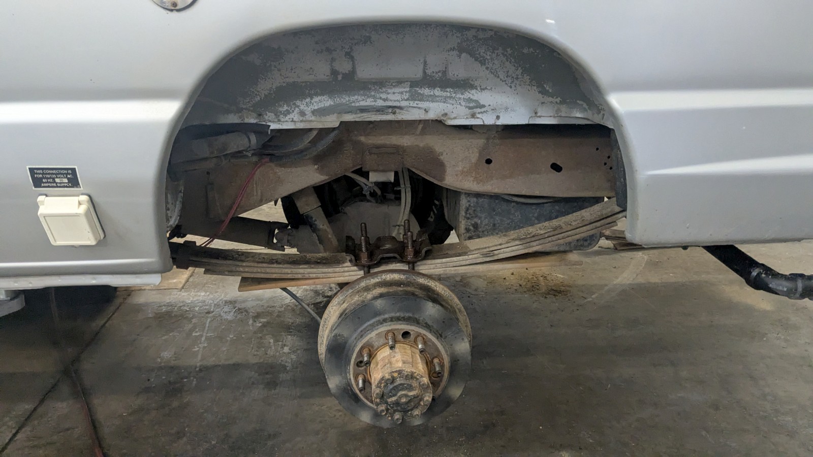 Monday morning was go-time. A few days earlier I’d arranged for some heavy metal — new rear leaf springs — to be shipped to a local shop that rents out its lifts and tools. Rather than pay the pros $140 an hour, I rented a bay for $40 and did it myself. That’s my role in our duo: field mechanic, chief grease monkey, and van chiropractor. Marcel’s original springs were long past retirement — flat as pancakes and sagging hard under the van’s weight. The replacements were beefy seven-leaf upgrades, each rated to handle the full load solo. Perfect.