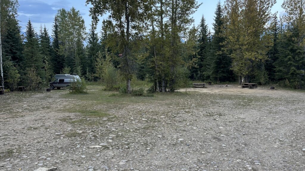 A few miles in, the washboard rattled our teeth and our patience. We passed a recreation area overlooking Wapta Falls, and Kerri was quick to hint, “We could just stay here…” But Marcel and I were on the same team and had more votes: forward motion. Twenty dusty miles later, the map showed something promising…